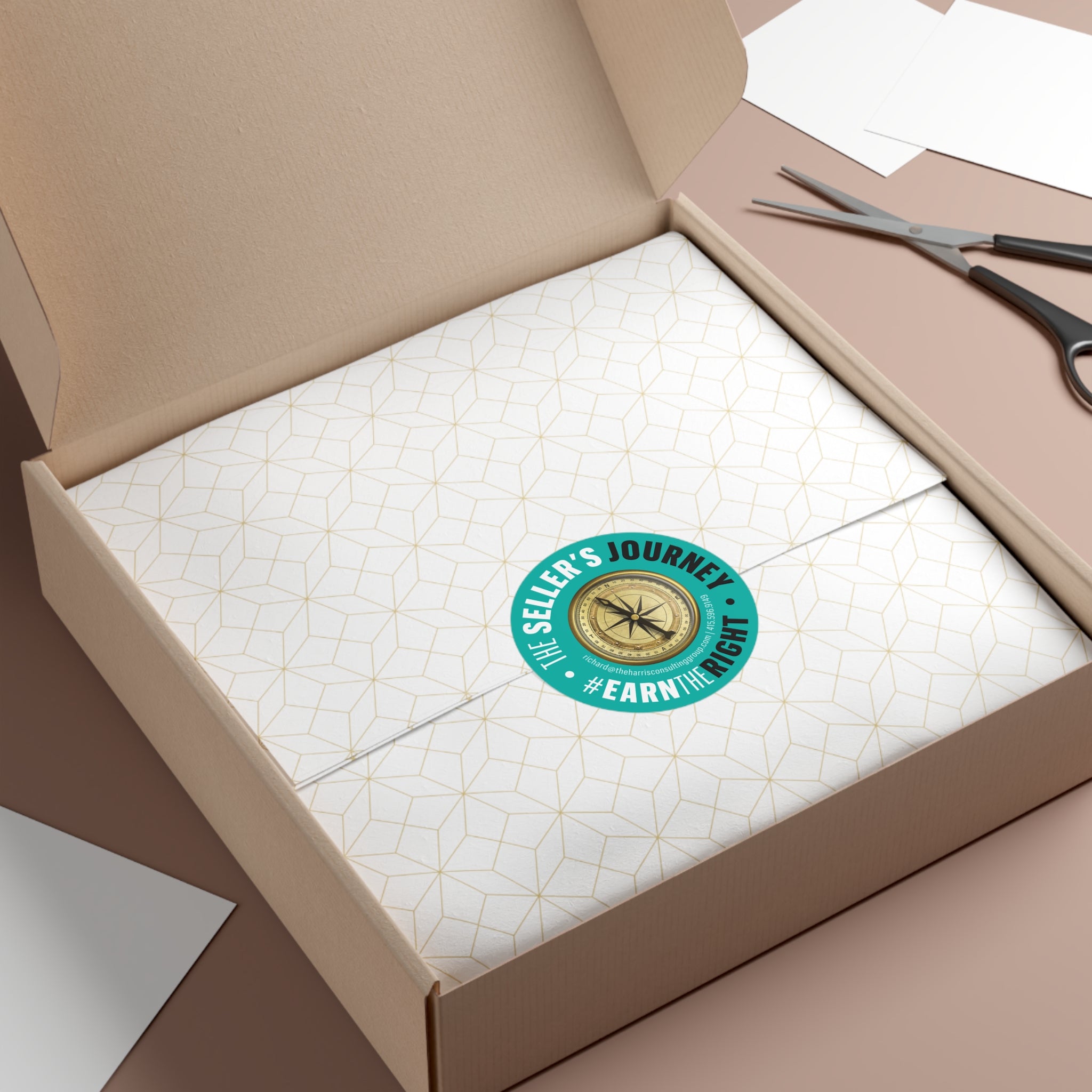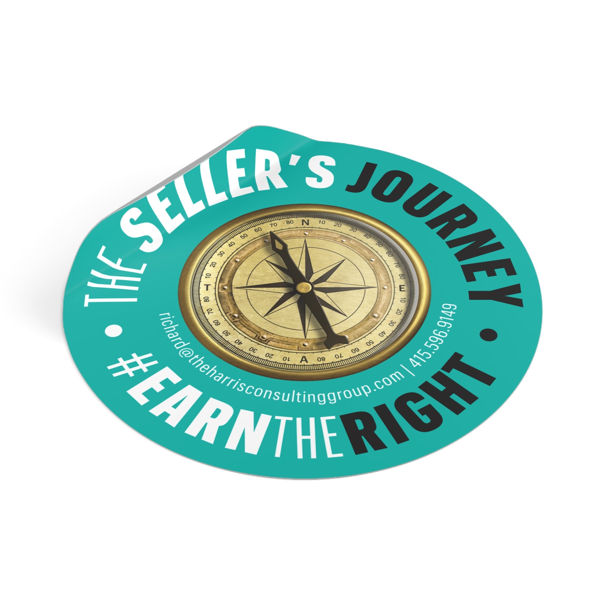 The Sellers Journey #EarnTheRight is a custom circle stickers are great for adding a touch of personality to any surface. These are rated to last over six years due to high-quality production. The base materials are premium vinyl and vibrant inks. The design layer is covered by a UV resistant laminate. If removal is necessary, the adhesive backing won't leave residue behind.