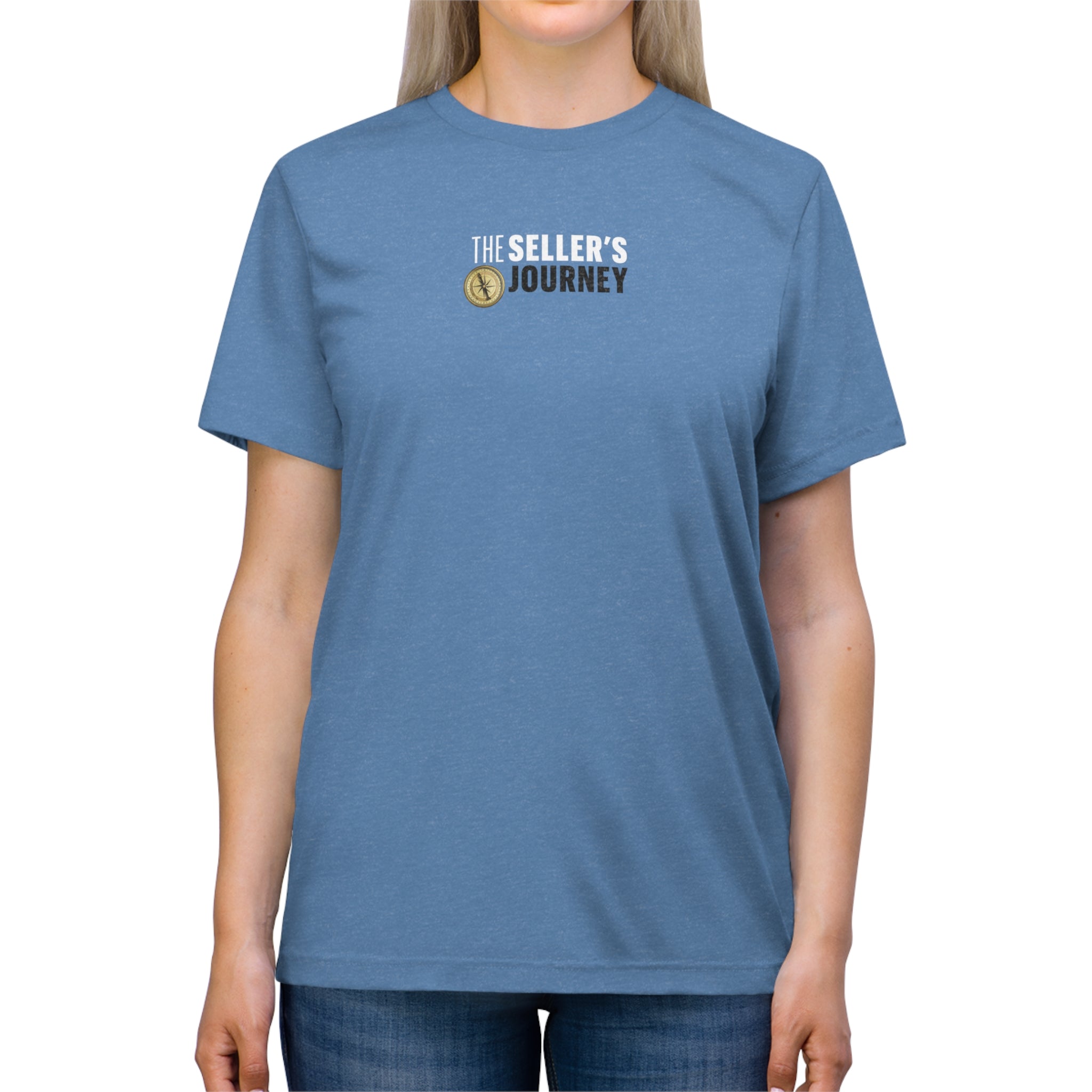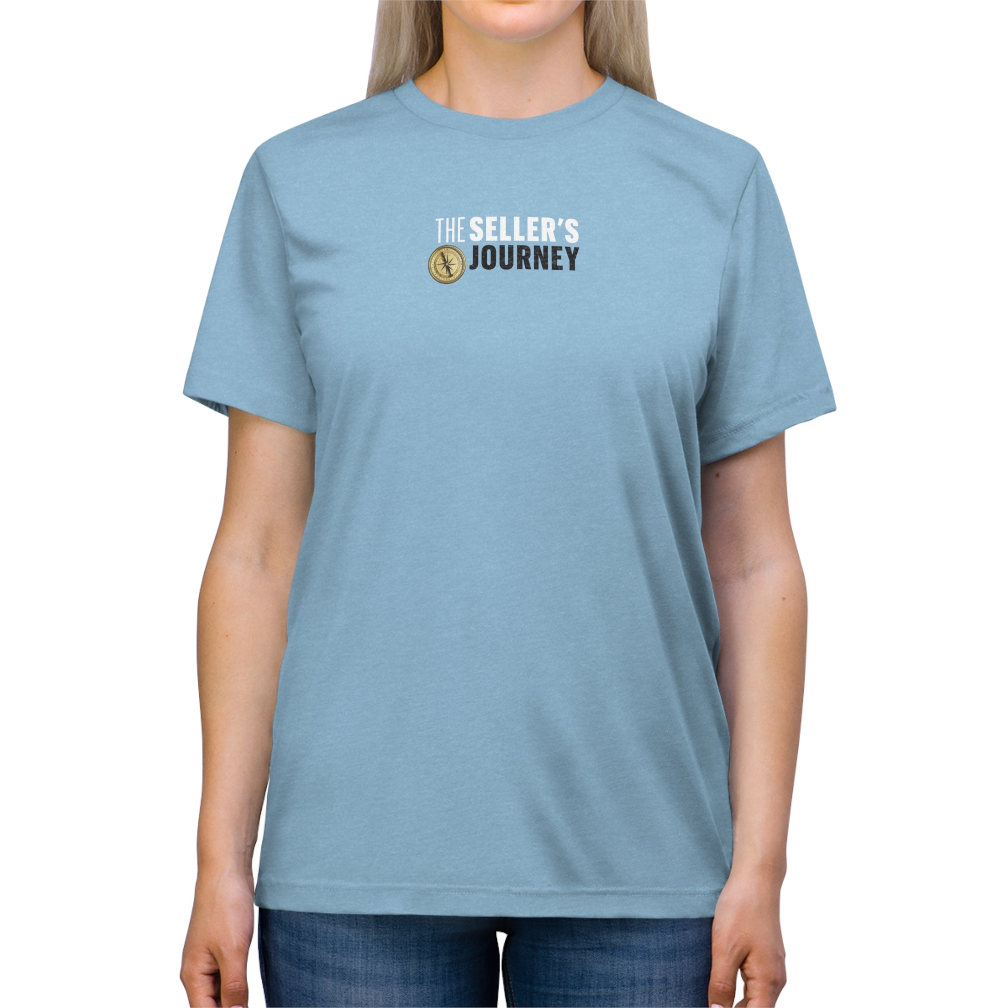 The Sellers Journey tee with compass design combines the comfort of cotton with the durability of polyester to create a unique, unisex t-shirt that is impeccable in quality and style. Each shirt comes with side seams to remain like new for longer, shoulder tapes that prevent stretching and a ribbed knit collar that helps retain the shirt’s shape.